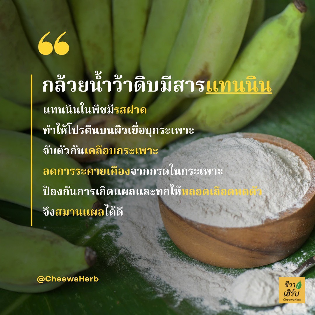 • ควรใช้ในรูปแบบที่เหมาะสม เช่น กล้วยดิบตากแห้งบด